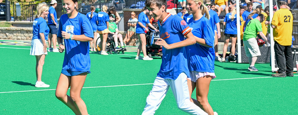 After having the opportunity to meet each other and warm up their bodies, athletes found their own teammates and huddled up. The field hockey field was split into two different games; the game on the left was for younger athletes and on the right side faced off The Poppers and The Jets vs The Tigers and The Wildcats. I was able to listen in on The Tigers pep talk and they had a great cheer before the first whistle! It definitely got their team hyped up for the game and ready to leave it all out on the field.